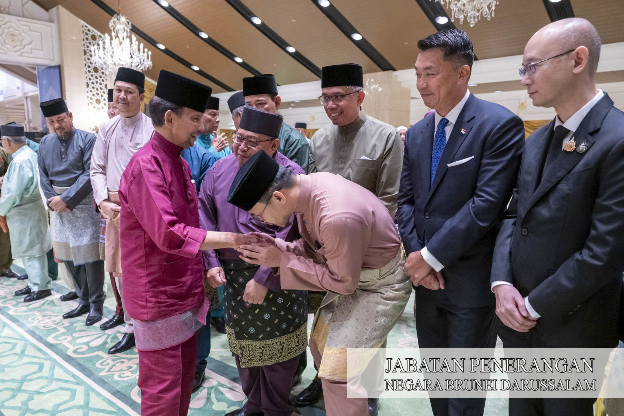 Pertemuan Kebawah Duli Yang Maha Mulia Paduka Seri Baginda Sultan dan Yang Di-Pertuan Negara Brunei Darussalam dengan para pembesar negara dengan perwakilan negara sahabat mencerminkan ketulusan baginda menjadikan Sambutan Hari Raya ini sebagai titian untuk mewujudkan rasa muhibah.