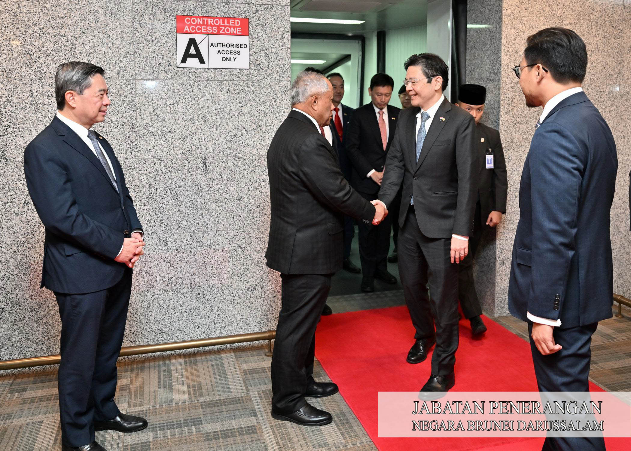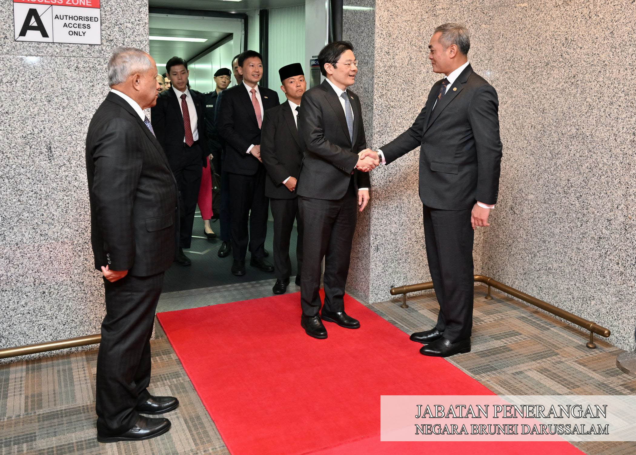 BANDAR SERI BEGAWAN, Isnin, 3 November. - Perdana Menteri dan Menteri Kewangan Republik Singapura, Tuan Yang Terutama Lawrence Wong, serta rombongan, tiba di Negara Brunei Darussalam (NBD) bagi Program Pemimpin-Pemimpin Muda (YLP) NBD dan Republik Singapura Kali Ke-11 yang berlangsung selama dua hari pada 3 hingga 4 November 2025.