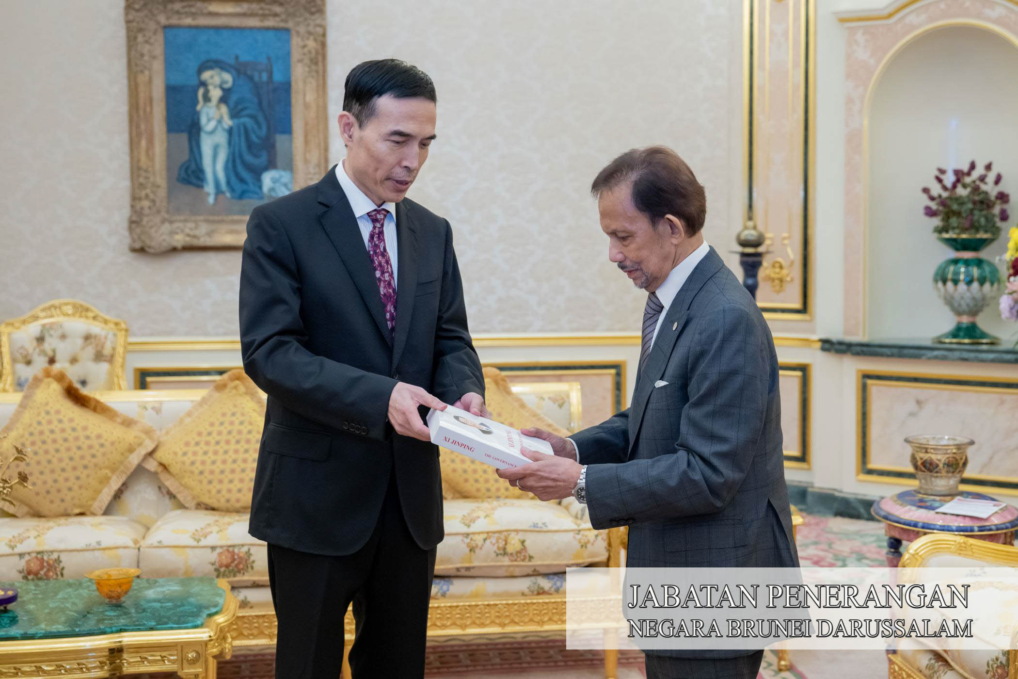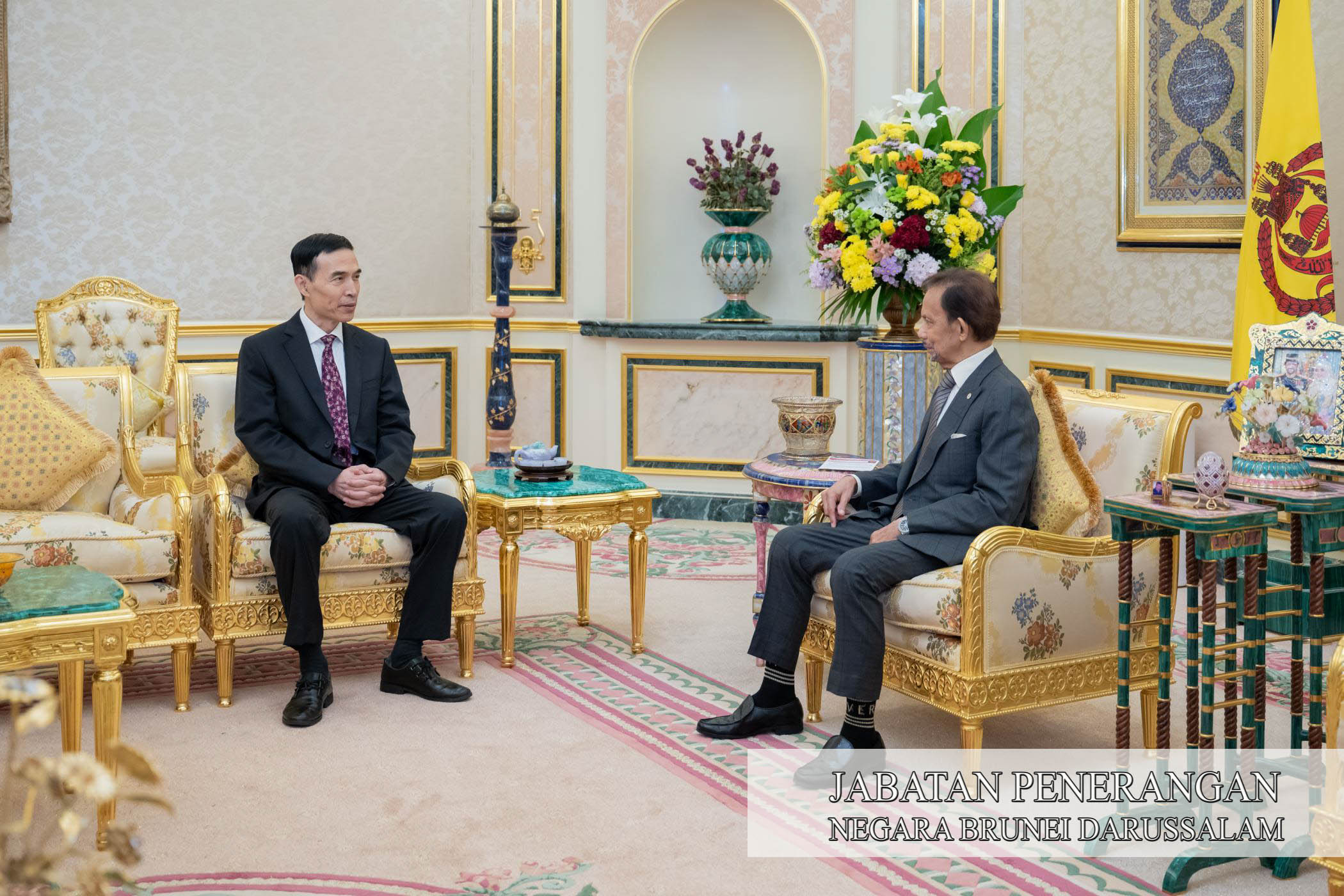 BANDAR SERI BEGAWAN, Selasa, 25 November. - Kebawah Duli Yang Maha Mulia Paduka Seri Baginda Sultan Haji Hassanal Bolkiah Mu'izzaddin Waddaulah ibni Al-Marhum Sultan Haji Omar 'Ali Saifuddien Sa'adul Khairi Waddien, Sultan dan Yang Di-Pertuan Negara Brunei Darussalam, petang tadi berkenan menerima mengadap Duta Besar Istimewa dan Mutlak Republik Rakyat China ke Negara Brunei Darussalam (NBD), Tuan Yang Terutama Xiao Jianguo yang akan menamatkan perkhidmatan.