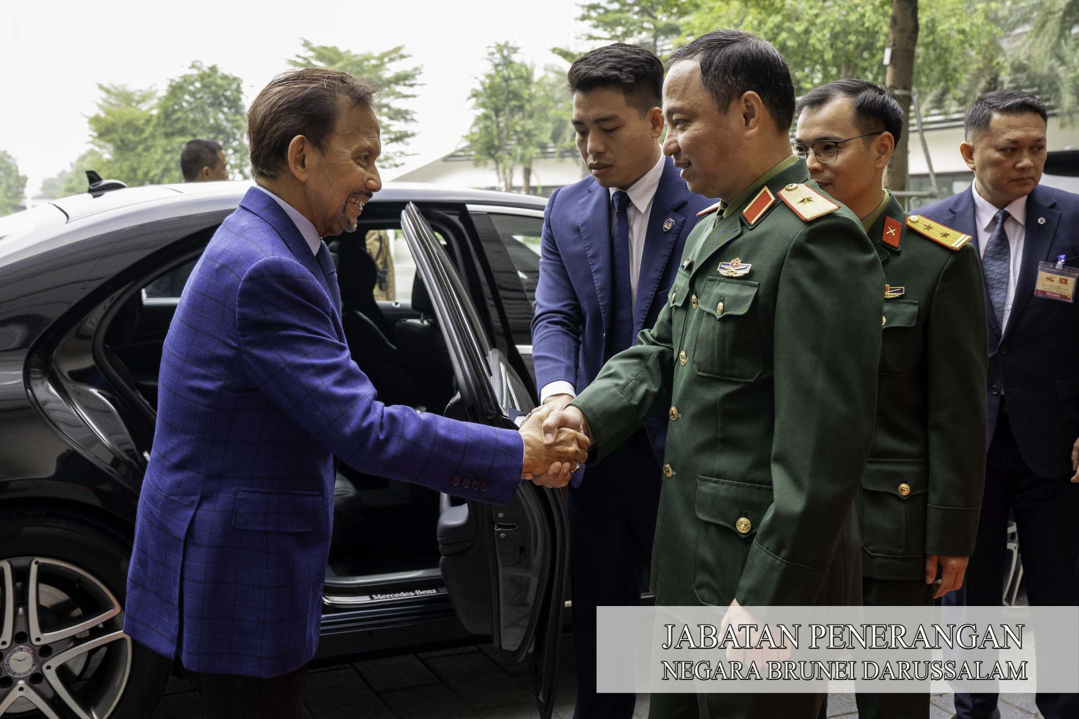 Keberangkatan tiba Kebawah Duli Yang Maha Mulia dijunjung oleh Deputy Minister of National Defence, Sr. Lt. Gen. Nguyen Truong Thang; dan Secretary General of Communist Party Committee, Vice President of Viettel, Major Gen. Nguyen Dinh Chien.
