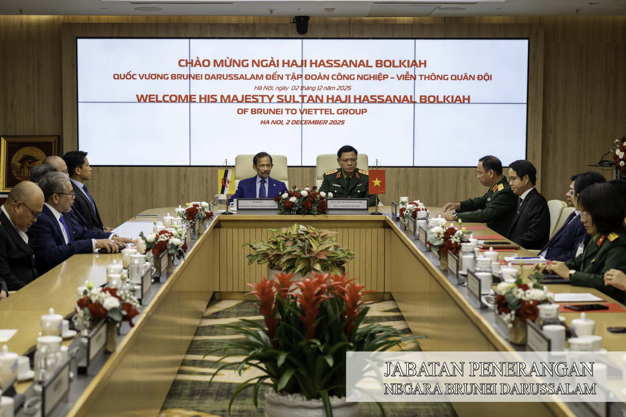 HA NOI, REPUBLIK SOSIALIS VIET NAM, Selasa, 2 Disember. - Kebawah Duli Yang Maha Mulia Paduka Seri Baginda Sultan Haji Hassanal Bolkiah Mu'izzaddin Waddaulah ibni Al-Marhum Sultan Haji Omar 'Ali Saifuddien Sa'adul Khairi Waddien, Sultan dan Yang Di-Pertuan Negara Brunei Darussalam, hari ini berkenan berangkat mengadakan lawatan ke Ibu Pejabat Viettel Group, Ha Noi.