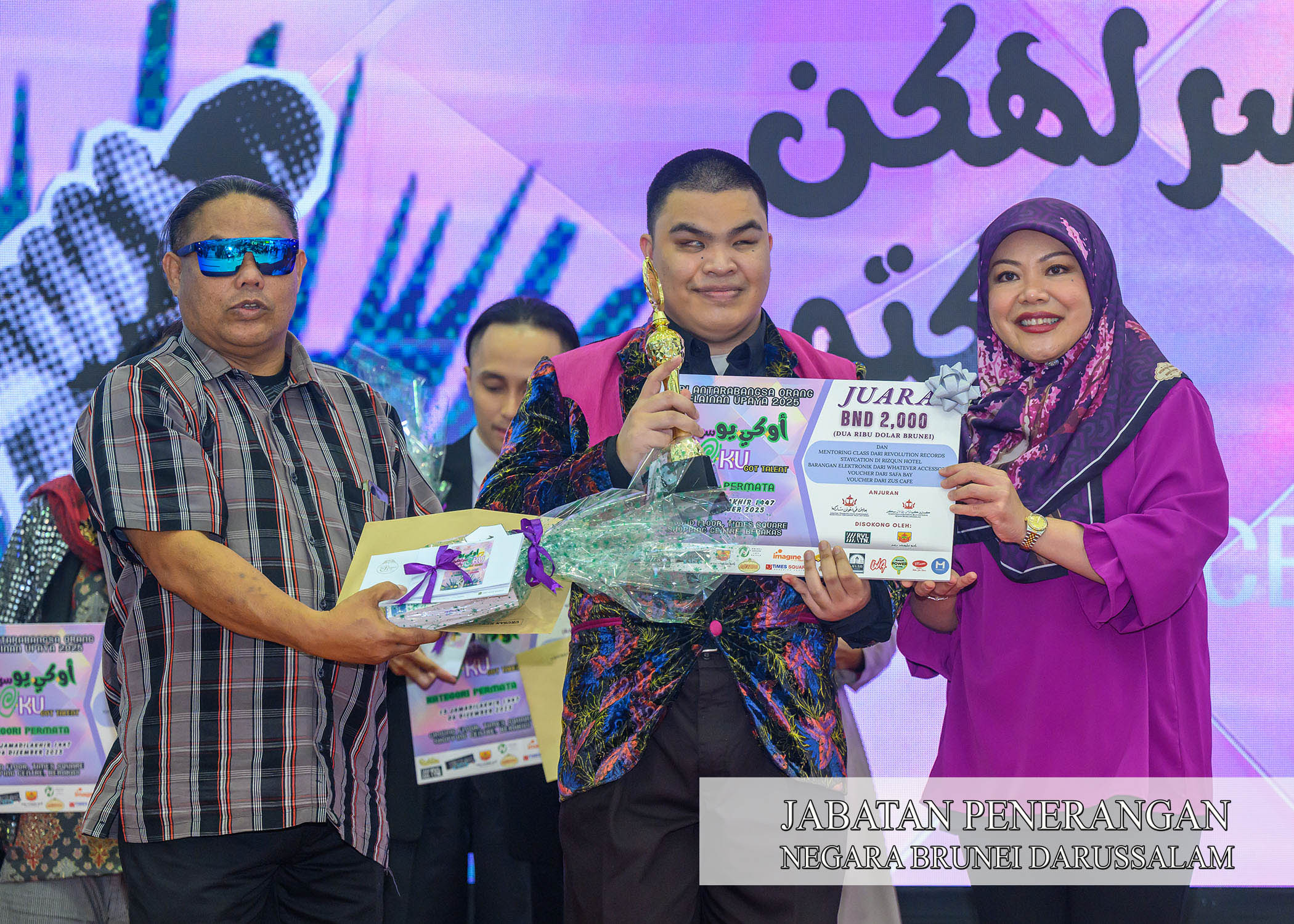 BERAKAS, Sabtu, 6 Disember. - Awang Eddy Iswanndy Ismail bin Imran dan Awang Muhamad Izan Safree bin Radat masing-masing muncul juara bagi Kategori Permata dan Kategori Mekar pada Program 'OKU Serlahkan Bakatmu' (OKU Got Talent) 2025 sempena Sambutan Hari Antarabangsa Orang Kelainan Upaya (HAOKU) pada tahun ini.