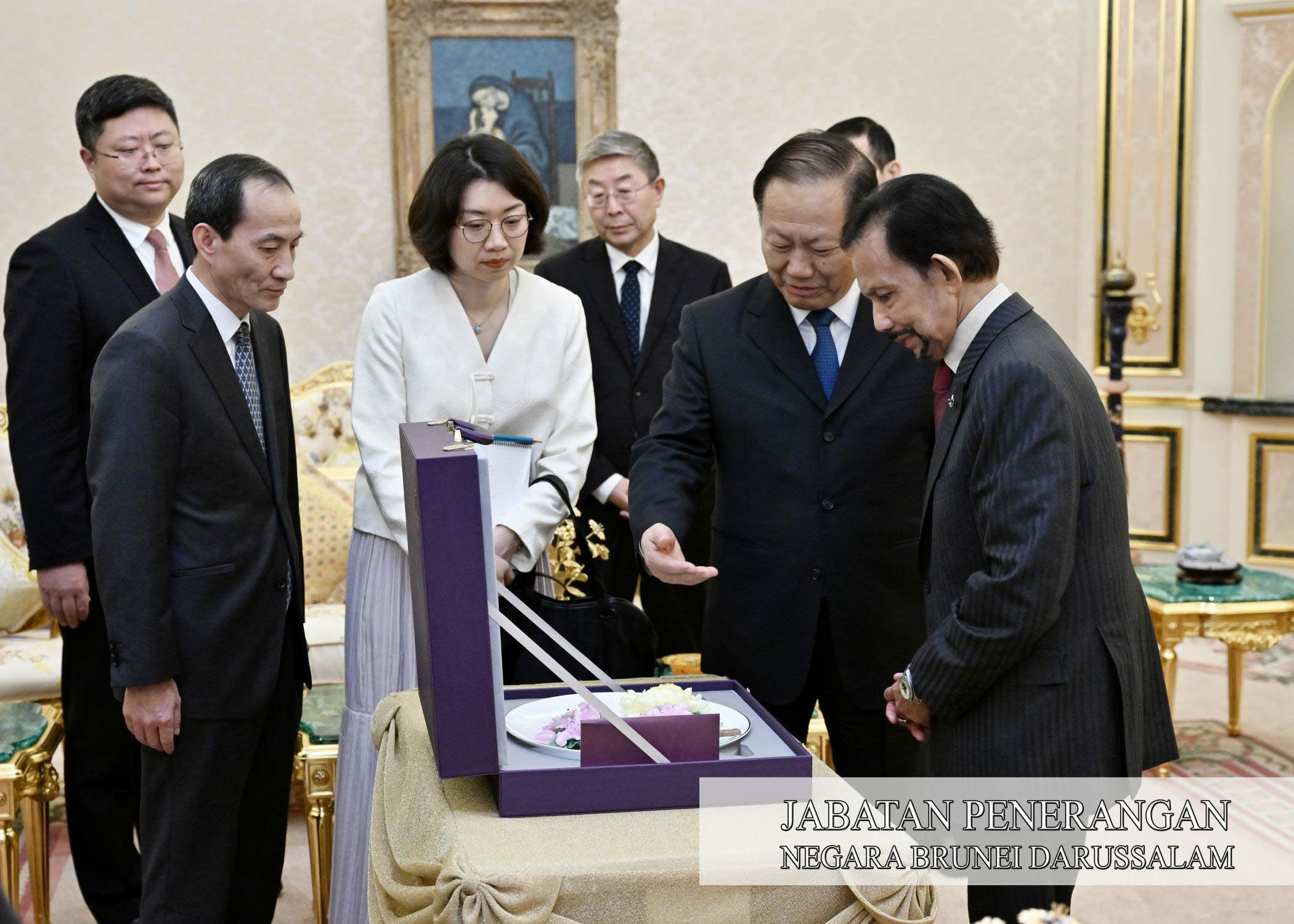 BANDAR SERI BEGAWAN, Selasa, 9 Disember. - Kebawah Duli Yang Maha Mulia Paduka Seri Baginda Sultan Haji Hassanal Bolkiah Mu'izzaddin Waddaulah ibni Al-Marhum Sultan Haji Omar 'Ali Saifuddien Sa'adul Khairi Waddien, Sultan dan Yang Di-Pertuan Negara Brunei Darussalam, petang ini, berkenan menerima mengadap Vice Chairman of the Standing Committee of the National People's Congress of the People's Republic of China and President of the Chinese People's Association for Peace and Disarmament, Tuan Yang Terutama Peng Qinghua yang mengadakan lawatan kerja ke negara ini selama dua hari.