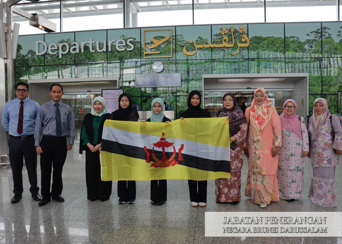 Hadir di Lapangan Terbang Antarabangsa Brunei, Berakas, di sini, bagi mengucapkan selamat belayar, Pemangku Pengarah Pendidikan Khas, Kementerian Pendidikan, Dr. Hajah Mustazah binti Awang Maidin.