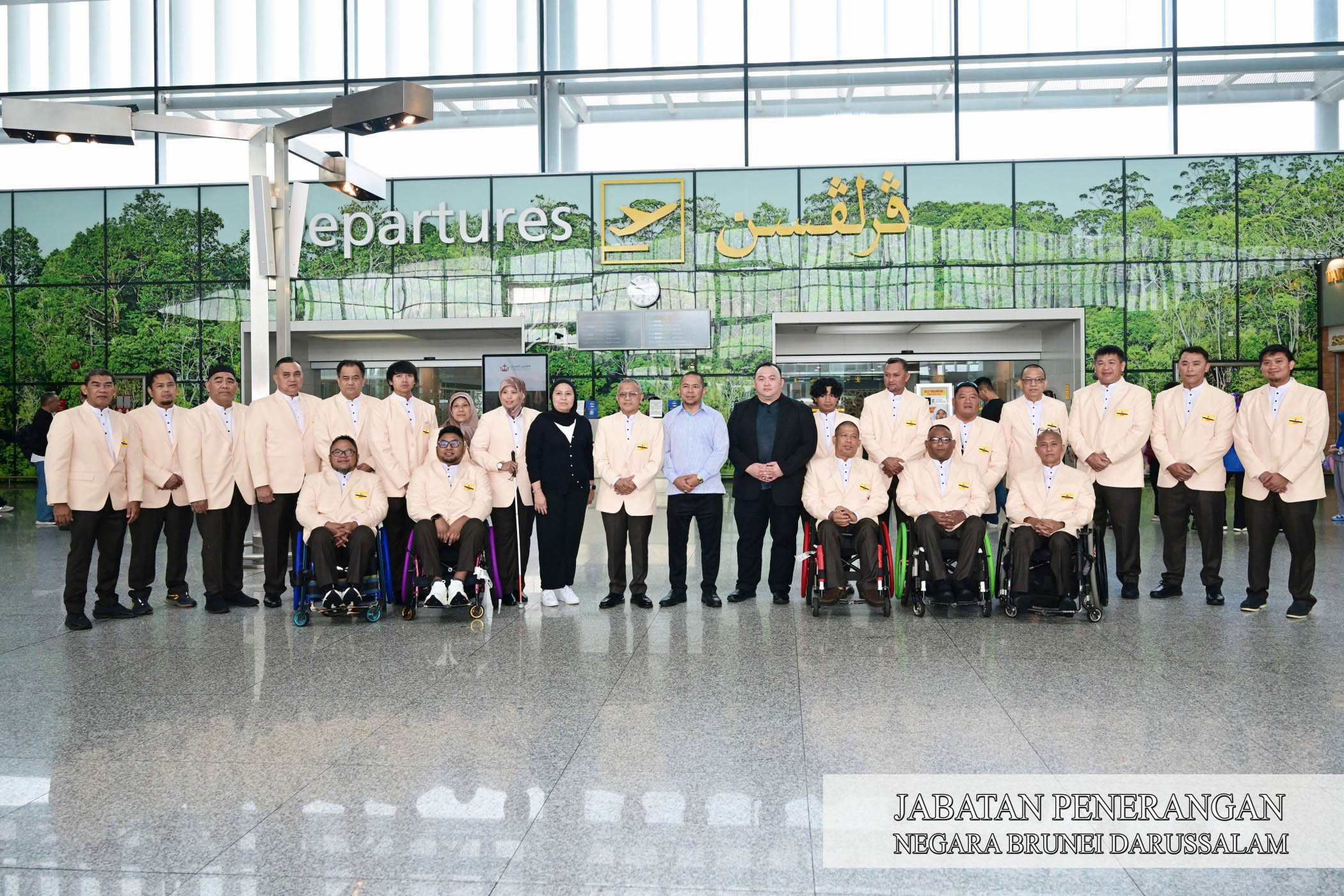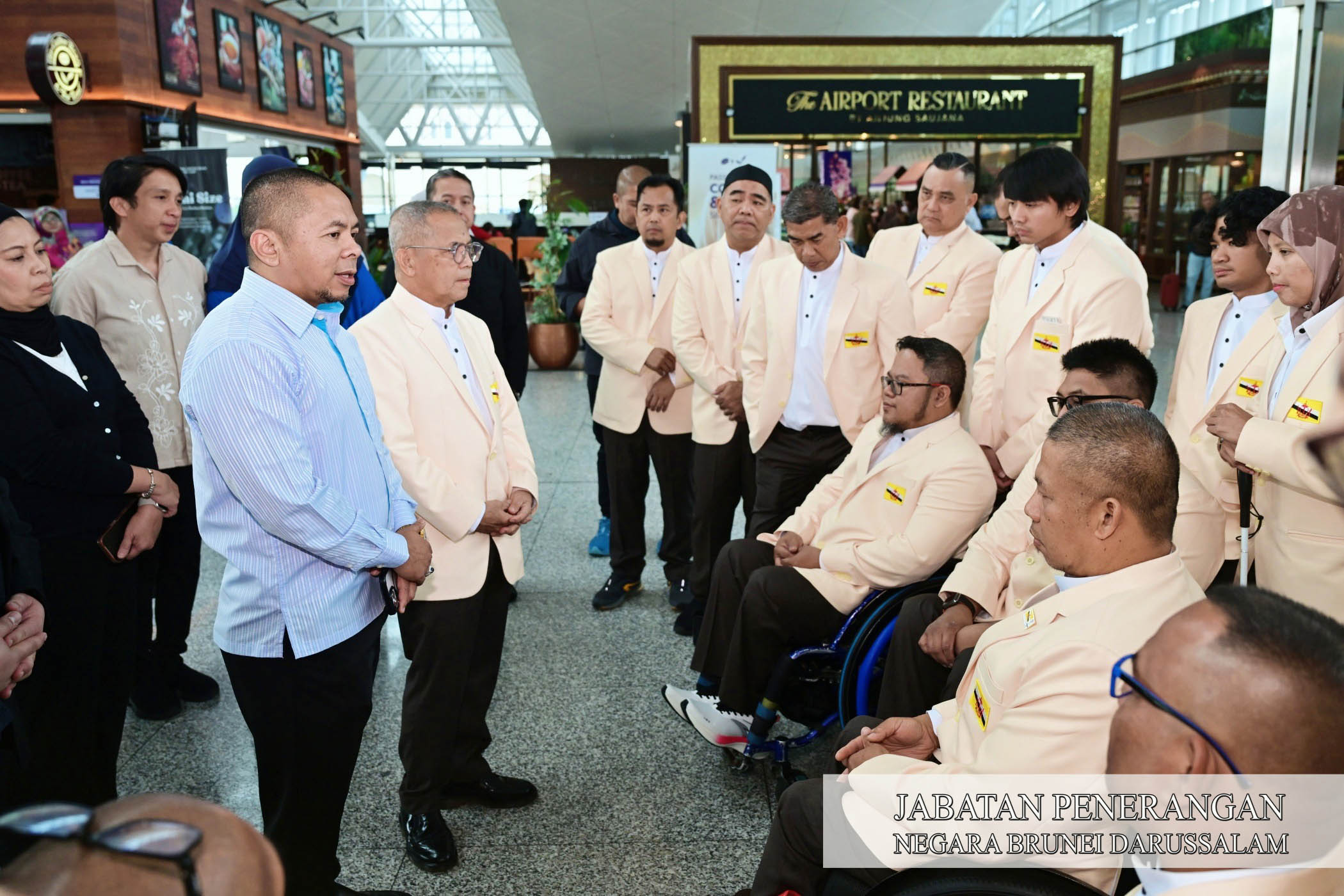 Hadir di Lapangan Terbang Antarabangsa Brunei bagi mengucapkan selamat belayar dan seterusnya memberikan kata-kata nasihat ialah Pemangku Pengarah Belia dan Sukan, Awang Haji Mohamad Rosfazilah bin Haji Yusly serta pegawai dan kakitangan Jabatan Belia dan Sukan, Persatuan-persatuan Sukan Kebangsaan dan keluarga kontinjen.
