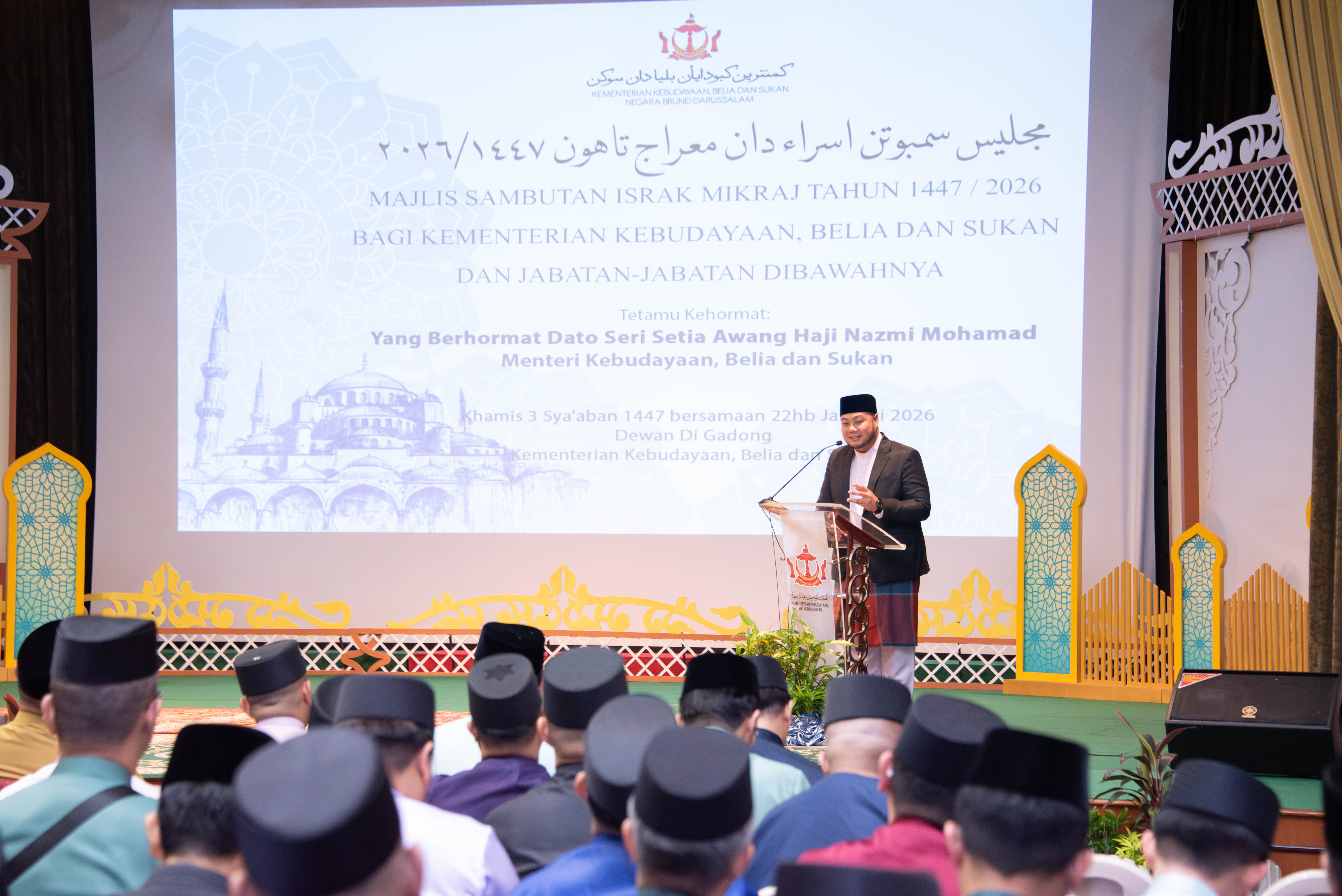BERAKAS, Khamis, 22 Januari. - Kementerian Kebudayaan, Belia dan Sukan (KKBS) telah mengadakan Majlis Sambutan Israk dan Mikraj Tahun 1447 Hijrah bersamaan 2026 Masihi di Dewan Digadong, KKBS.