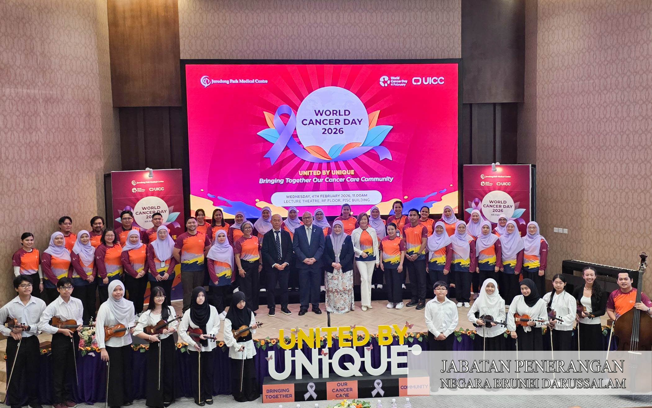 JERUDONG, Rabu, 4 Februari. - Sempena Hari Kanser Sedunia 2026, The Brunei Cancer Centre (TBCC), Jerudong Park Medical Centre (JPMC) telah mengumpulkan pesakit, penjaga, keluarga, ahli profesional kesihatan serta golongan belia di bawah tema global 'United by Unique', menegaskan semula kepercayaan bahawa walaupun setiap perjalanan kanser bersifat peribadi, kekuatan lahir melalui perpaduan dan sokongan bersama.