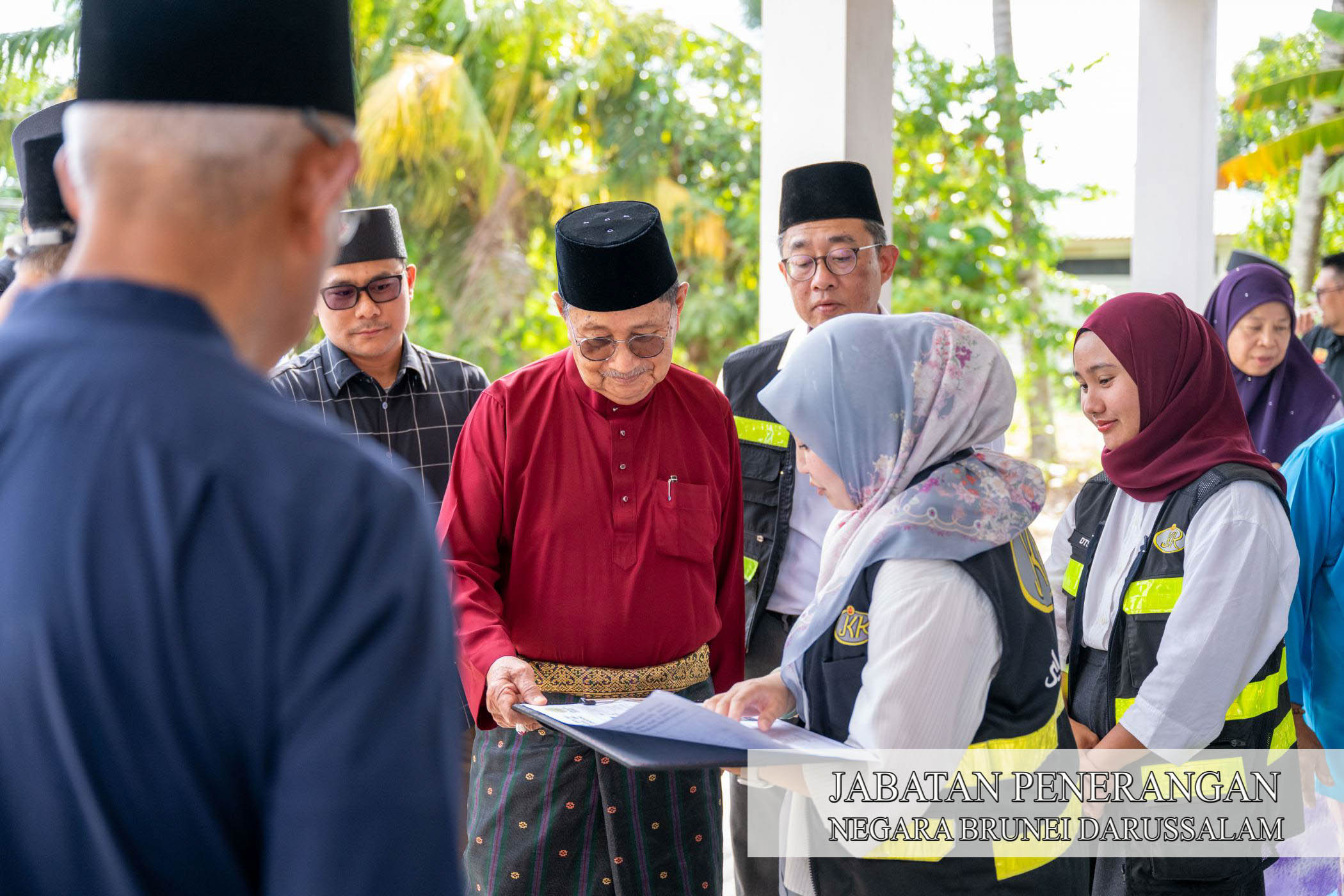 Yang Berhormat Menteri Hal Ehwal Ugama; Timbalan Menteri Hal Ehwal Ugama, Yang Mulia Pengiran Dato Seri Paduka Haji Mohammad Tashim bin Pengiran Haji Hassan, selaku Naib Yang Di-Pertua MUIB; Setiausaha Tetap KHEU, Awang Haji Mohammad Rosli bin Haji Ibrahim; Timbalan Setiausaha Tetap (Dasar dan Keugamaan) KHEU, Awang Haji Shamshol bin Haji Omar; dan Pemangku Timbalan Setiausaha Tetap (Pentadbiran dan Kewangan) KHEU, Awang Misle bin Haji Abdul Karim, seterusnya mengadakan lawatan secara serentak ke lima-lima buah rumah tersebut yang masing-masing terletak di Kampung Mulaut, Kampung Tanah Jambu, Kampung Jaya Setia, Kampung Serasa dan Kampung Sungai Hanching.