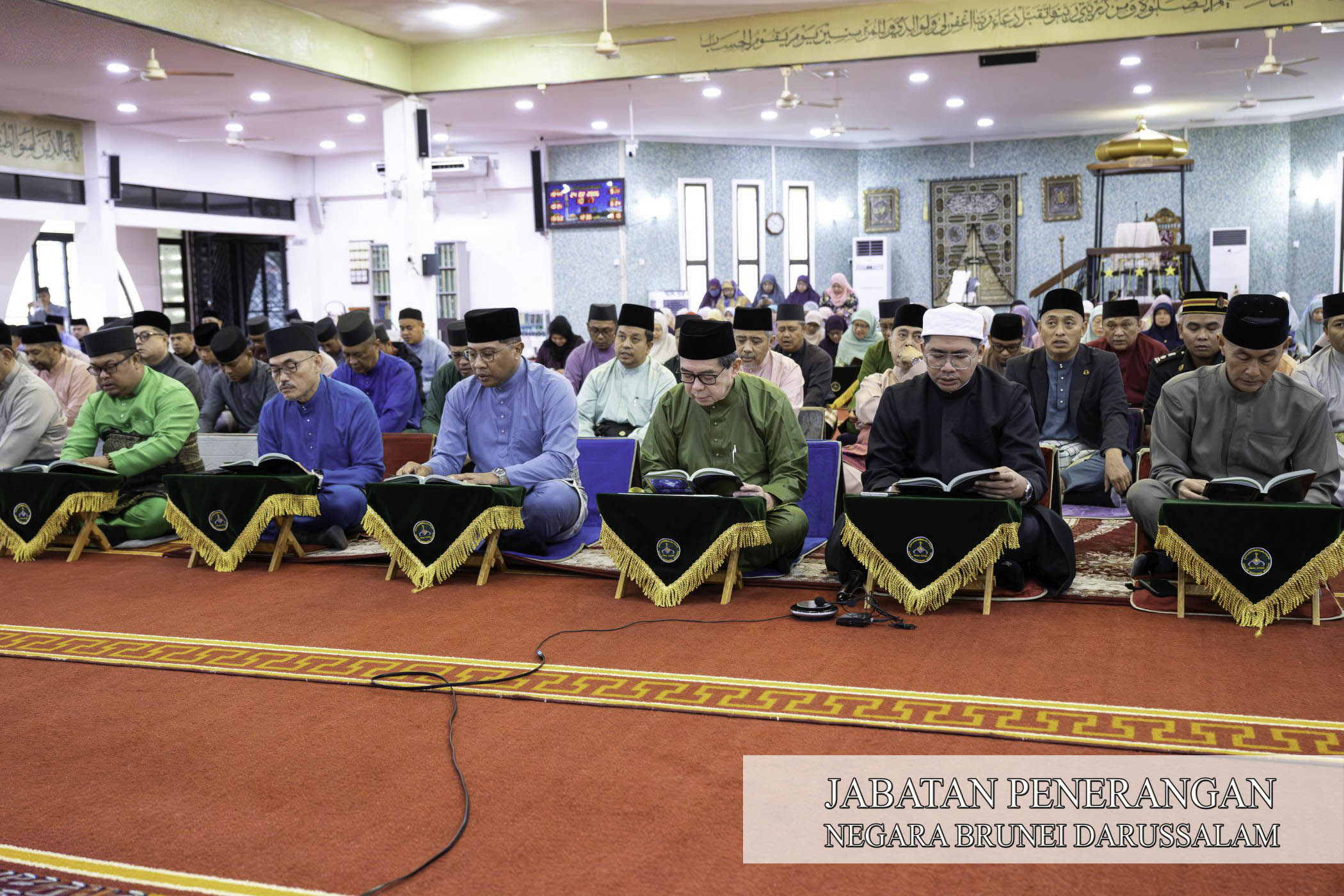 Seterusnya secara maya dari Masjid Omar 'Ali Saifuddien, dengan mendengarkan bacaan Surah Al-Mulk beramai-ramai dipimpin oleh Imam Tingkat I, Jabatan Hal Ehwal Masjid, KHEU, Awang Mohd. Waiz bin Tajuddin.