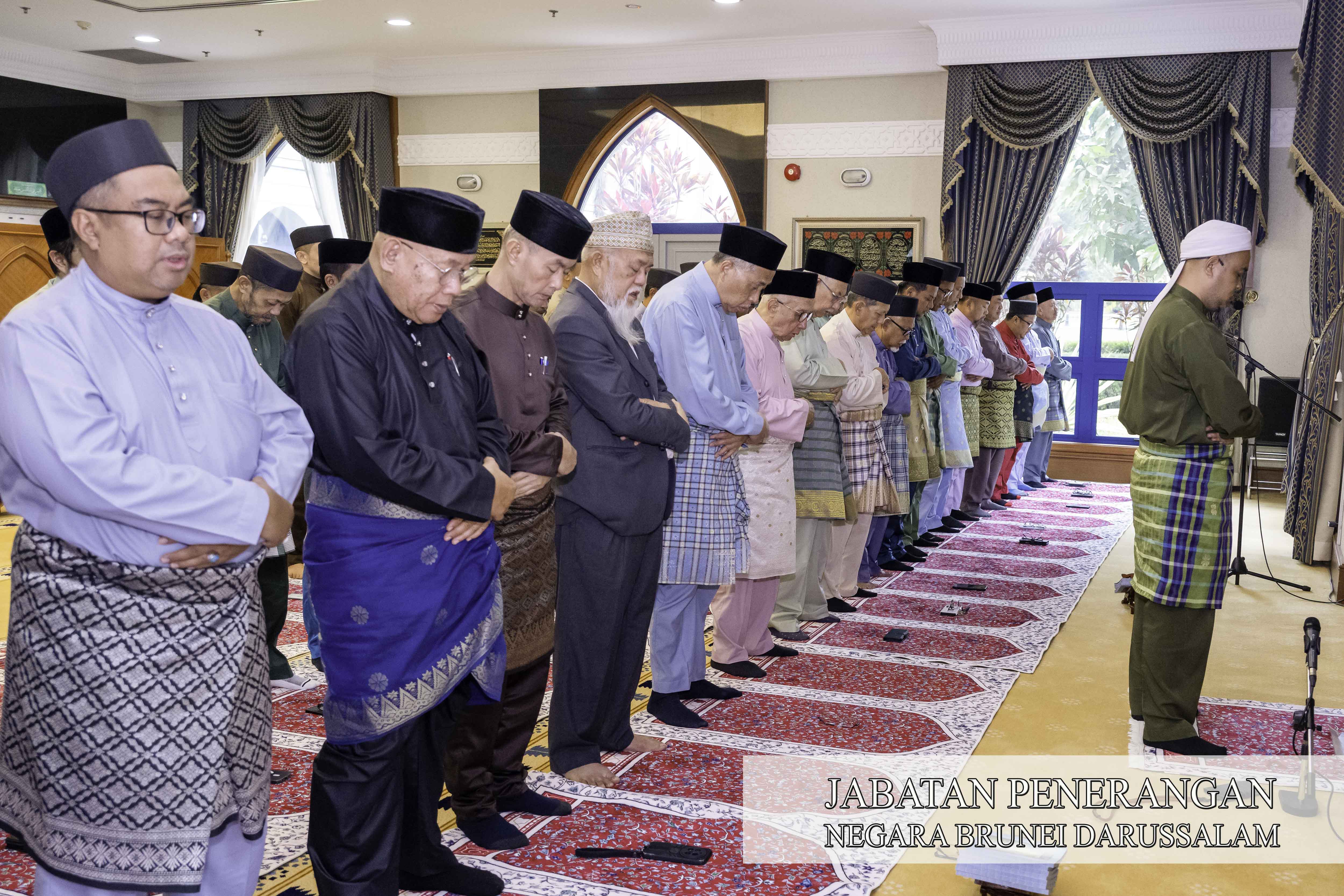 BANDAR SERI BEGAWAN, Rabu, 4 Mac. - Sempena Istiadat Pembukaan Rasmi Mesyuarat Pertama Dari Musim Permesyuaratan Ke-22 Majlis Mesyuarat Negara (MMN) Bagi Tahun 1447 Hijrah / 2026 Masihi, Majlis Sembahyang Fardu Zohor Berjemaah dan Sembahyang Sunat Hajat dan seterusnya Membaca Surah Yaa Siin dan Doa Selamat diadakan petang tadi di Surau Jabatan Majlis-Majlis Mesyuarat.