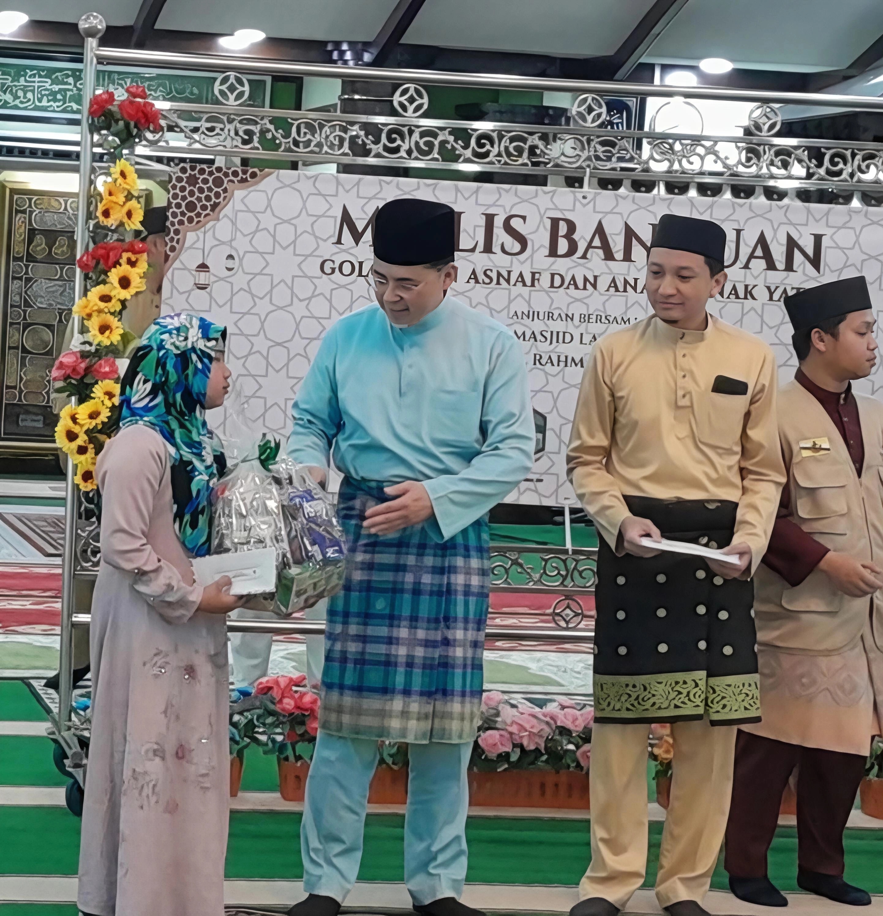 Acara diteruskan lagi dengan penyampaian bantuan berupa wang dan keperluan asasi kepada sembilan anak yatim dan 20 orang daripada golongan asnaf yang terpilih.