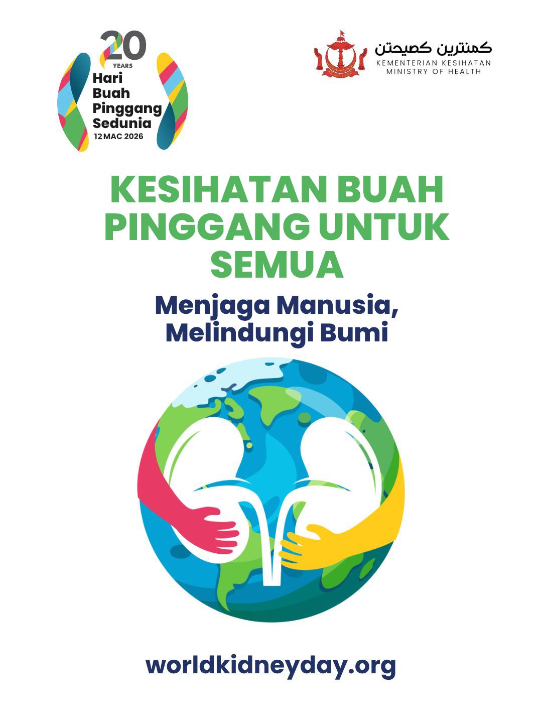 Perkara demikian dikongsikan oleh Menteri Kesihatan, Yang Berhormat Dato Seri Setia Dr. Awang Haji Mohammad Isham bin Haji Jaafar, dalam perutusan sempena Sambutan Hari Buah Pinggang Sedunia 2026 (World Kidney Day-WKD 2026), dengan tema 'Kesihatan Buah Pinggang Untuk Semua : Menjaga Manusia, Melindungi Bumi' (Kidney Health for All : Caring for People, Protecting the Planet).