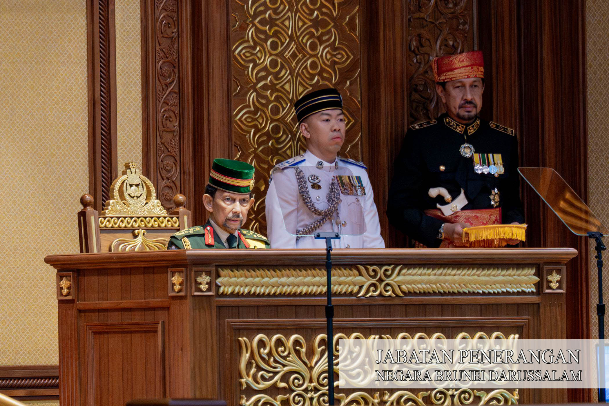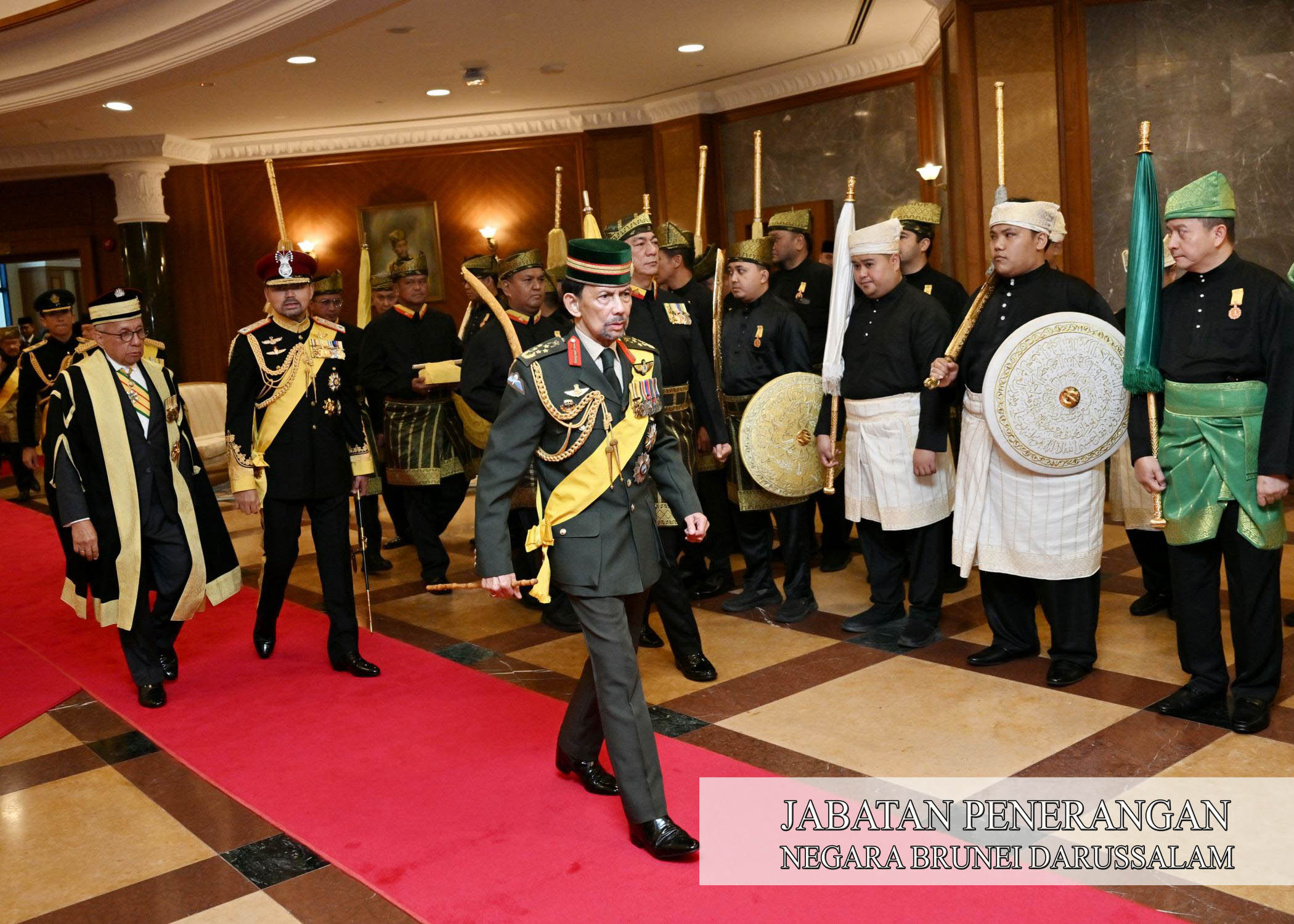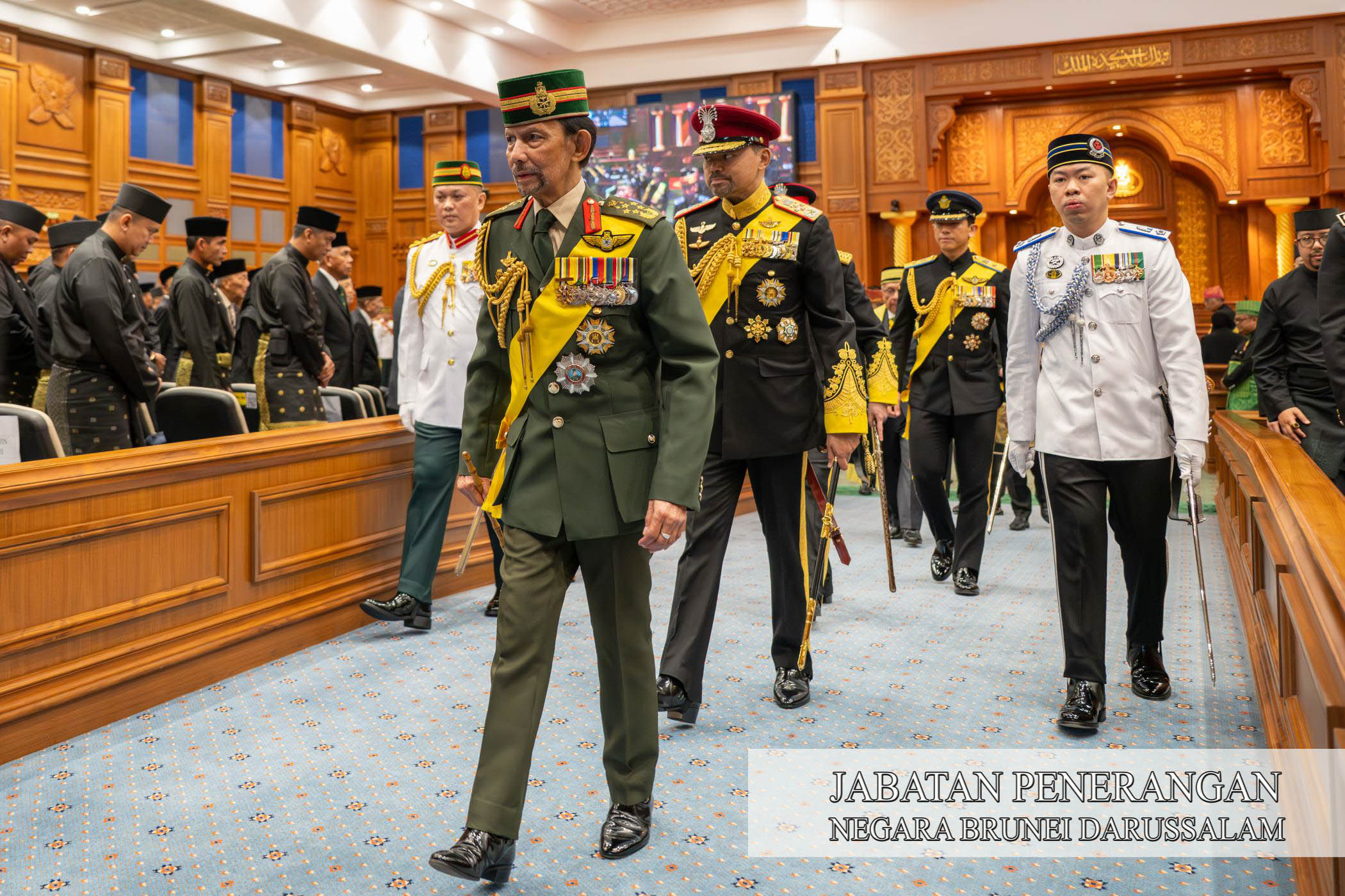 Kebawah Duli Yang Maha Mulia Paduka Seri Baginda Sultan Haji Hassanal Bolkiah Mu'izzaddin Waddaulah ibni Al-Marhum Sultan Haji Omar 'Ali Saifuddien Sa'adul Khairi Waddien, Sultan dan Yang Di-Pertuan Negara Brunei Darussalam berangkat merasmikan Istiadat Pembukaan Rasmi Mesyuarat Pertama Dari Musim Permesyuaratan Ke-22 MMN, pagi tadi.