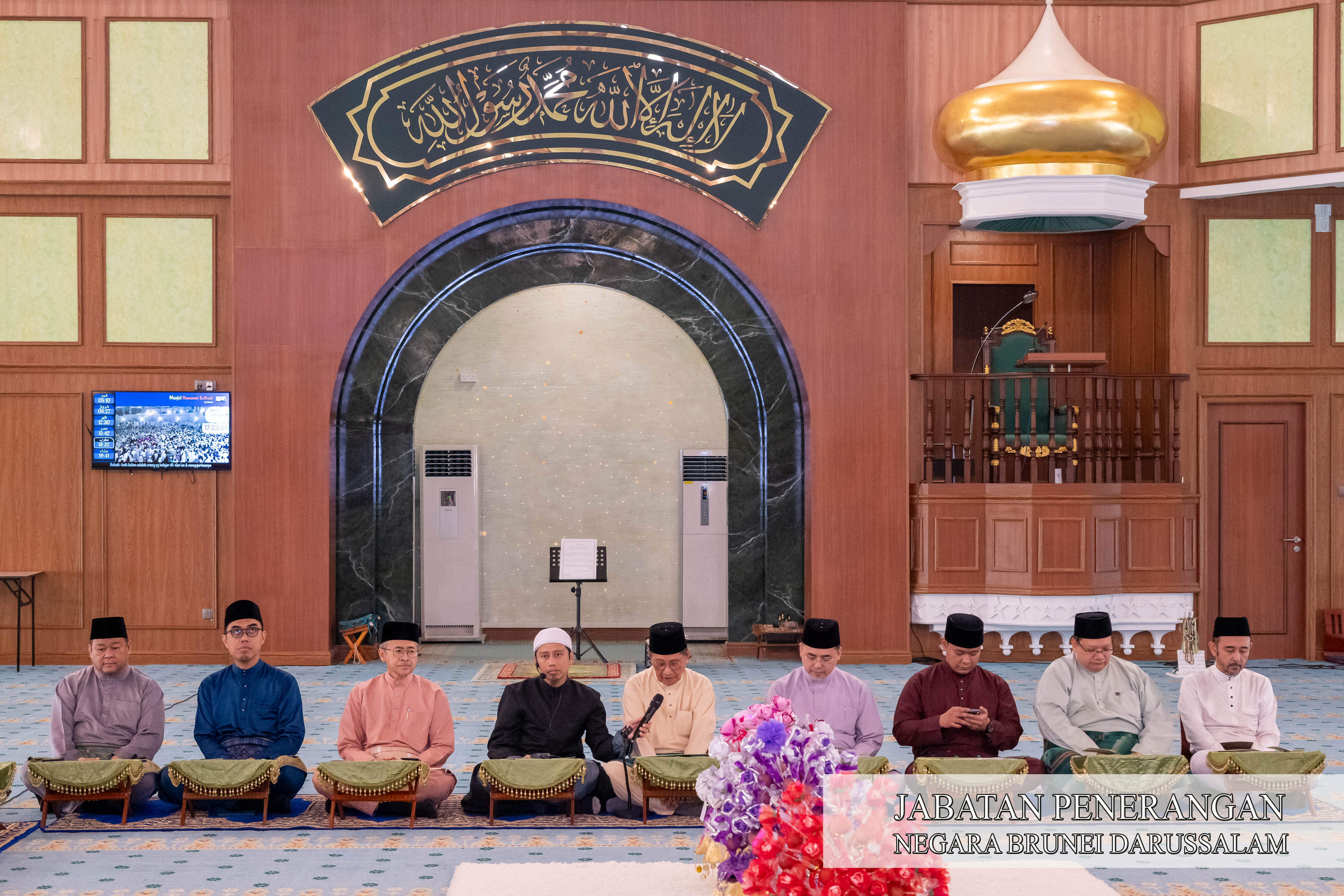Majlis diserikan lagi dengan Dikir Marhaban beramai-ramai dipimpin oleh pegawai dari Pejabat Ehwal Masjid Daerah Brunei dan Muara bersama para pegawai serta ahli jawatankuasa masjid berkenaan dan diakhiri dengan bacaan Doa Peliharakan Sultan dan Negara Brunei Darussalam oleh, Pegawai Hal Ehwal Masjid, Masjid Hassanal Bolkiah, Kampung Mentiri, Pengiran Mohammad Sallehin bin Pengiran Tejuddin.