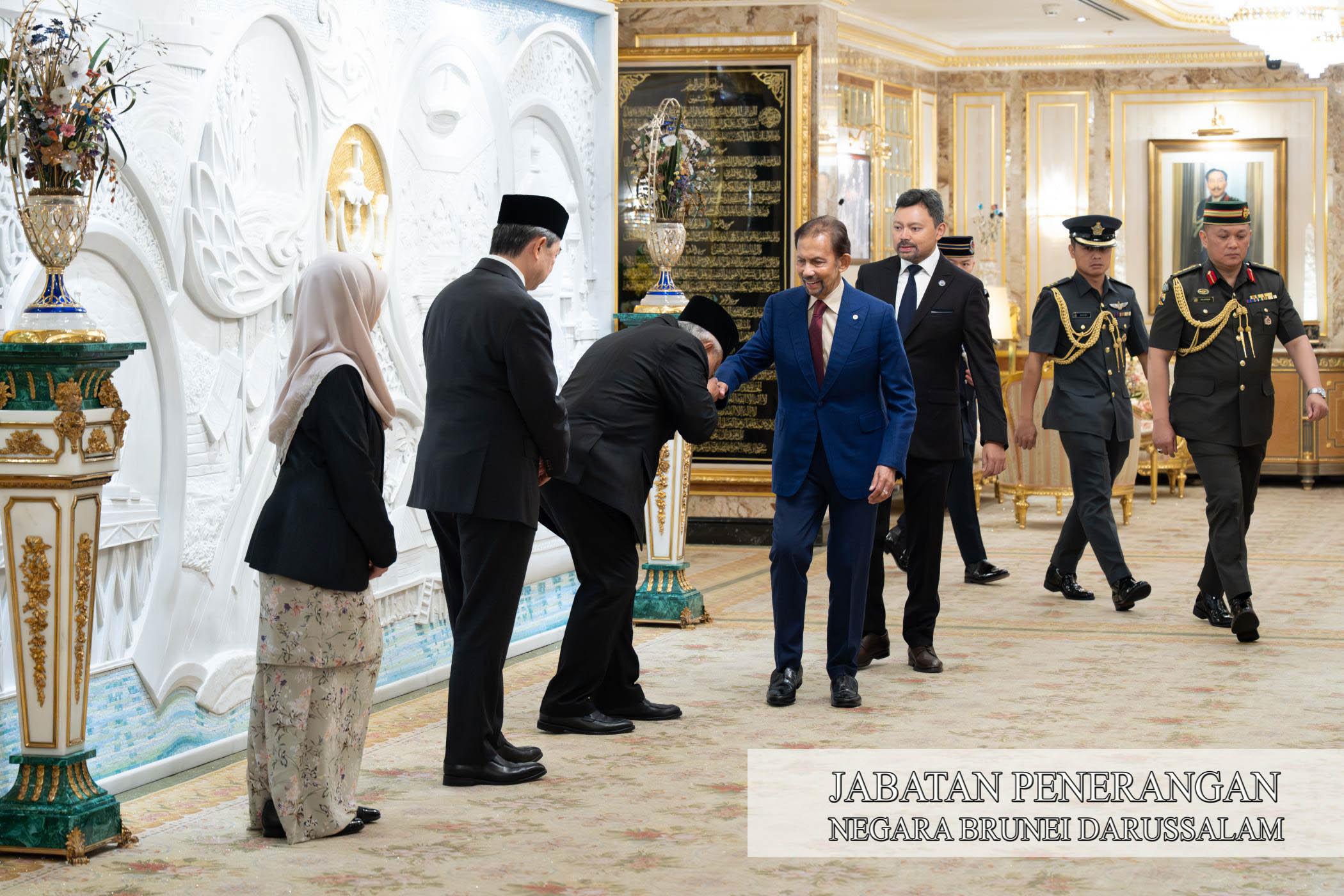 Turut berangkat ialah paduka anakanda baginda, Duli Yang Teramat Mulia Paduka Seri Pengiran Muda Mahkota Pengiran Muda Haji Al-Muhtadee Billah, Menteri Kanan di Jabatan Perdana Menteri.