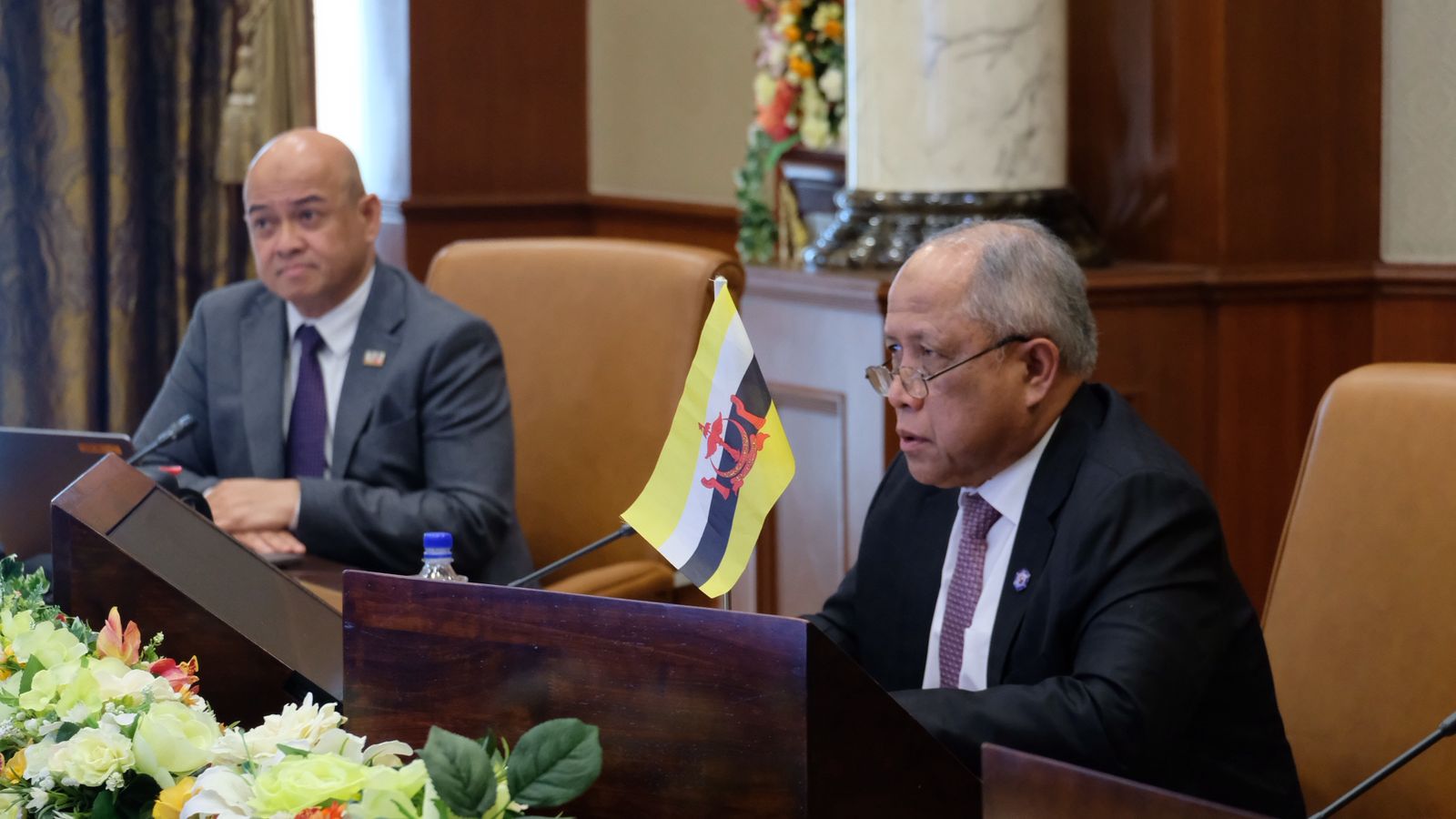 Yang Berhormat Menteri di JPM dan Menteri Pertahanan II menyampaikan penghargaan Kebawah Duli Yang Maha Mulia Paduka Seri Baginda Sultan Haji Hassanal Bolkiah Mu'izzaddin Waddaulah ibni Al-Marhum Sultan Haji Omar 'Ali Saifuddien Sa'adul Khairi Waddien, Sultan dan Yang Di-Pertuan Negara Brunei Darussalam kepada Perdana Menteri Jepun, Puan Yang Terutama Sanae Takaichi, atas penganjuran Sidang Kemuncak AZEC+ yang penting ini.