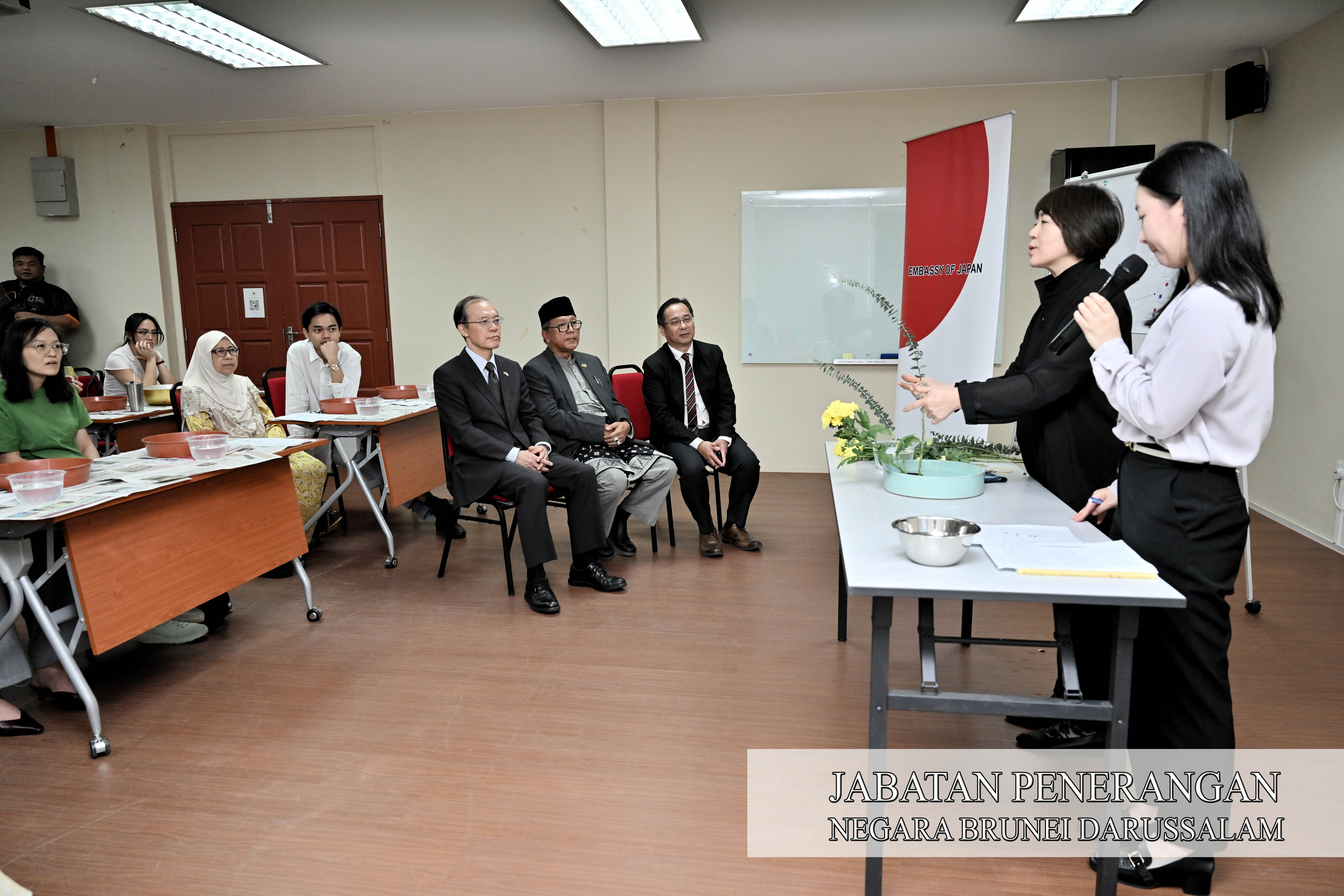 Sehubungan dengan itu, Kedutaan Jepun di Negara Brunei Darussalam (NBD) petang tadi menganjurkan Bengkel Ikebana (seni gubahan bunga Jepun), bertempat di Pusat Pembelajaran Sepanjang Hayat (Pusat L3C), Kementerian Pendidikan.