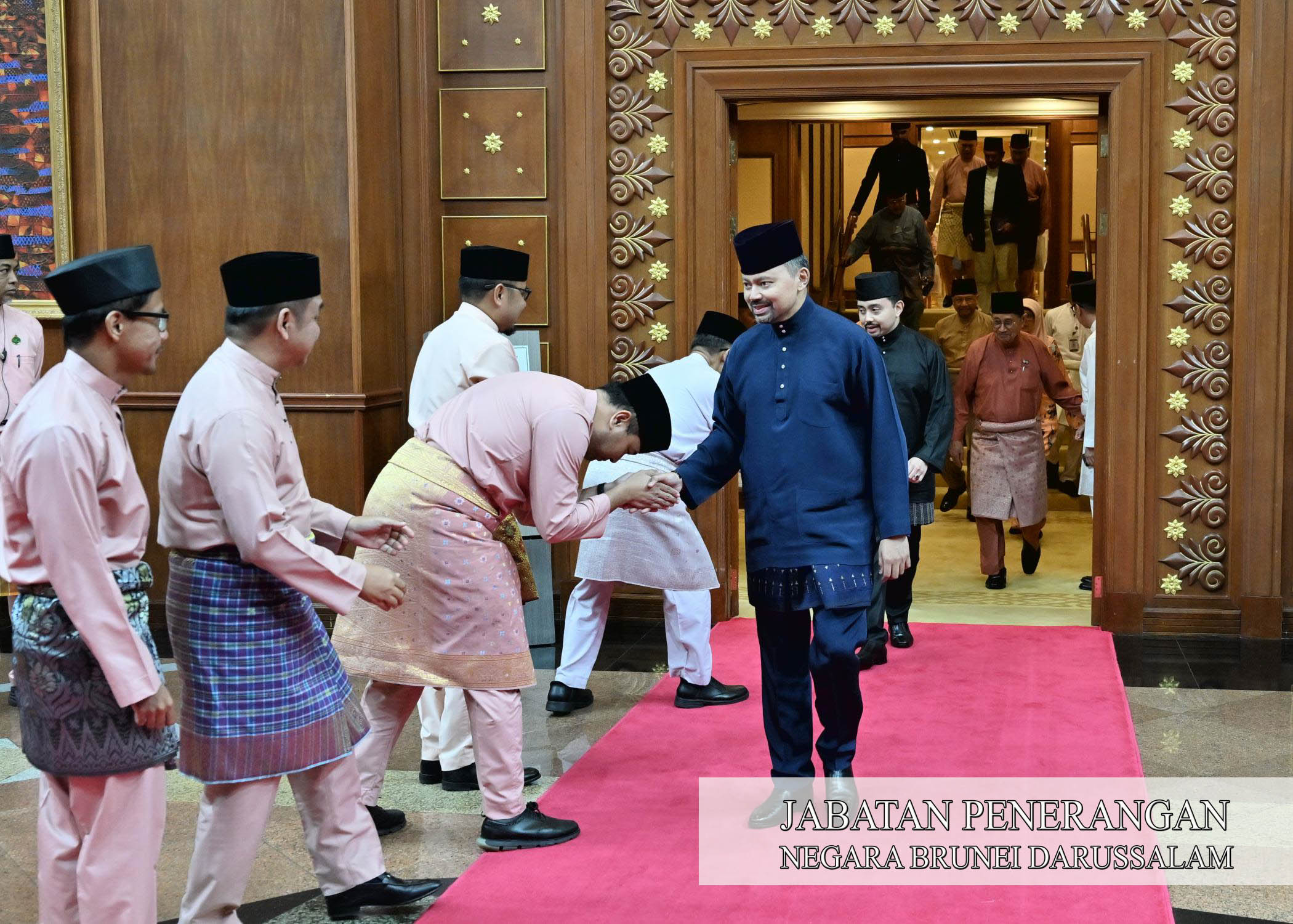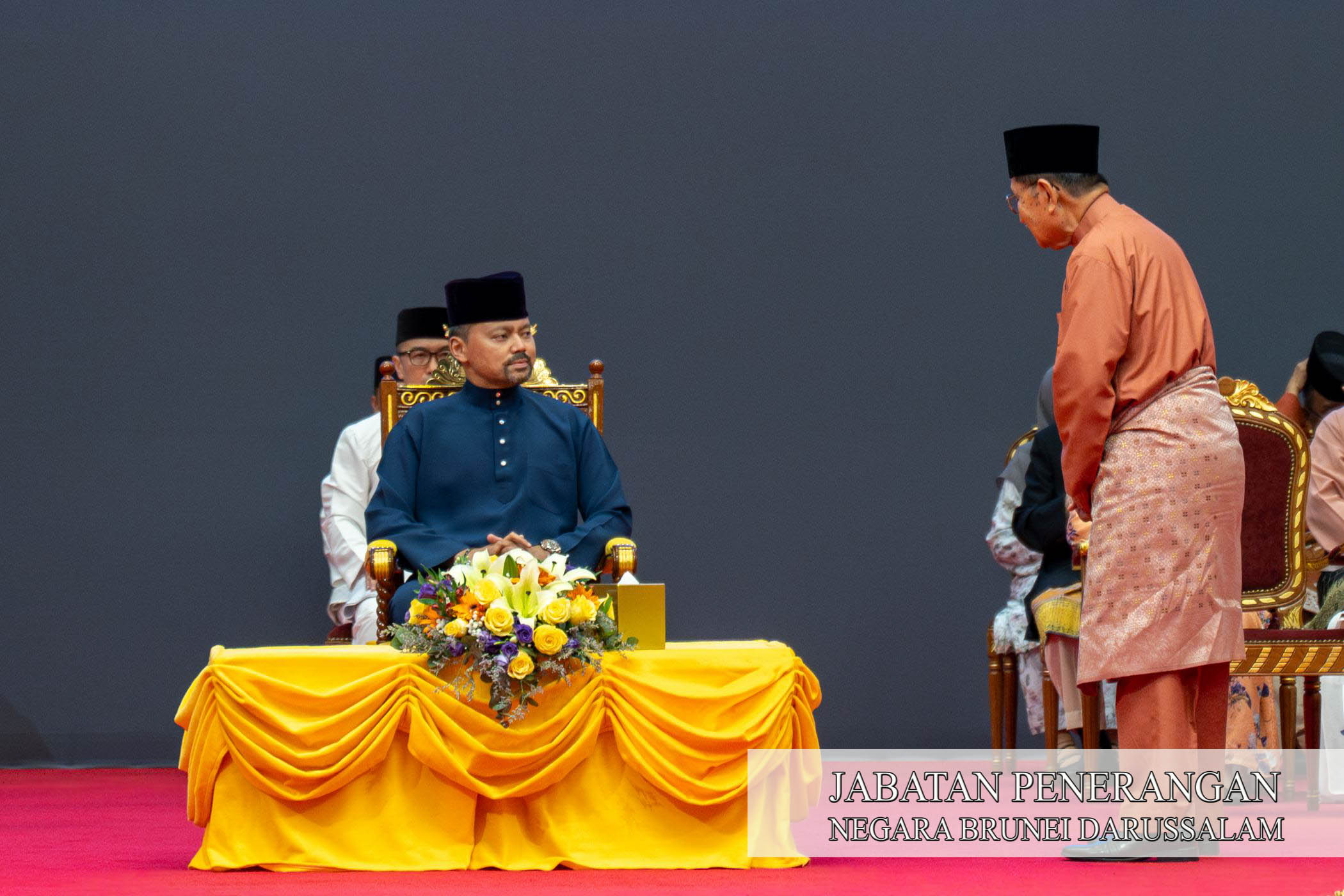 Keberangkatan tiba Duli Yang Teramat Mulia Paduka Seri Pengiran Muda Mahkota Pengiran Muda Haji Al-Muhtadee Billah dijunjung oleh Menteri Hal Ehwal Ugama, Yang Berhormat Pehin Udana Khatib Dato Paduka Seri Setia Ustaz Awang Haji Badaruddin bin Pengarah Dato Paduka Awang Haji Othman, selaku Pengerusi Jawatankuasa Tertinggi Musabaqah Membaca Al-Quran Bahagian Dewasa Peringkat Kebangsaan Tahun 1447H / 2026M; Menteri di JPM dan Menteri Kewangan dan Ekonomi II, Yang Berhormat Dato Seri Setia Dr. Awang Haji Mohd. Amin Liew bin Abdullah; Menteri Pendidikan, Yang Berhormat Datin Seri Setia Dr. Hajah Romaizah binti Haji Md. Salleh; Menteri Pengangkutan dan Infokomunikasi, Yang Berhormat Pengiran Dato Seri Setia Shamhary bin Pengiran Dato Paduka Haji Mustapha; dan Ketua Hakim Syar'ie, Yang Berhormat Pehin Orang Kaya Paduka Seri Utama Dato Paduka Seri Setia Awang Haji Salim bin Haji Besar; serta Ahli Jawatankuasa Tertinggi Musabaqah Membaca Al-Quran Bahagian Dewasa Peringkat Kebangsaan Tahun 1447H/ 2026M yang lain.