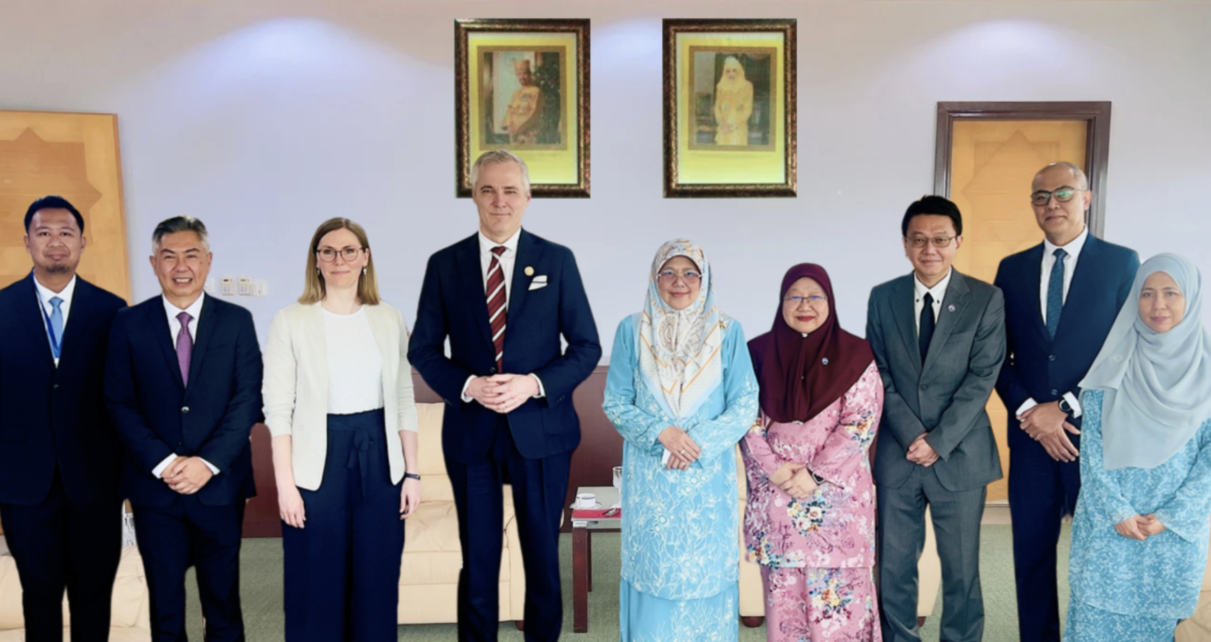 BERAKAS, Selasa, 28 April. - Menteri Pendidikan, Yang Berhormat Datin Seri Setia Dr. Hajah Romaizah binti Haji Md. Salleh telah menerima kunjungan hormat daripada Menteri Pendidikan Republik Finland, Tuan Yang Terutama Anders Adlercreutz, bertempat di Bilik At-Taqwa, Pejabat Menteri Pendidikan, Kementerian Pendidikan, Berakas.